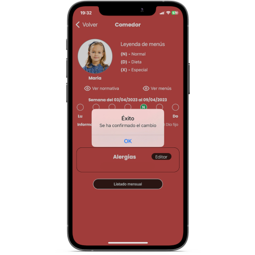 Si quieres deshacer o modificar alguna inscripción, sólo tienes que hacer clic sobre el día en cuestión, y podrás cambiar de menú o desmarcar el día, sólo ese día o para todas las semanas. ¡Si lo tienes que hacer comprueba que lo haces en la semana correcta!