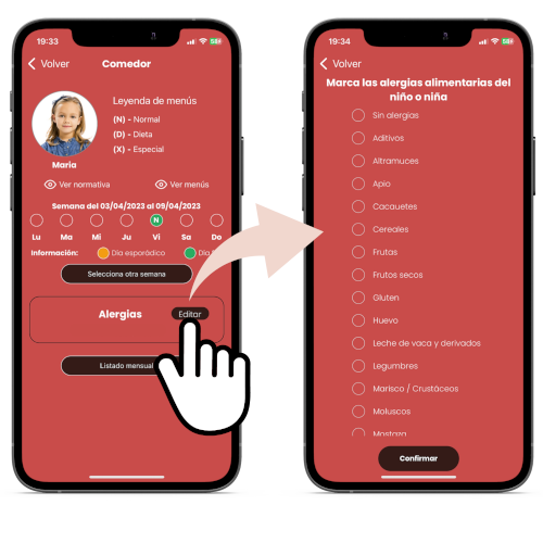 Si el centro lo tiene habilitado, también deberás informar si tu hijo o hija tiene alguna alergia, y si no tiene ninguna, deberás indicarlo igualmente.