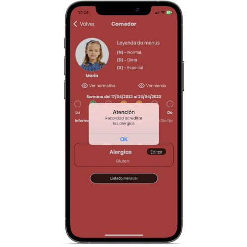 Recuerda acreditar las alergias con el certificado médico correspondiente, si el centro te lo solicita